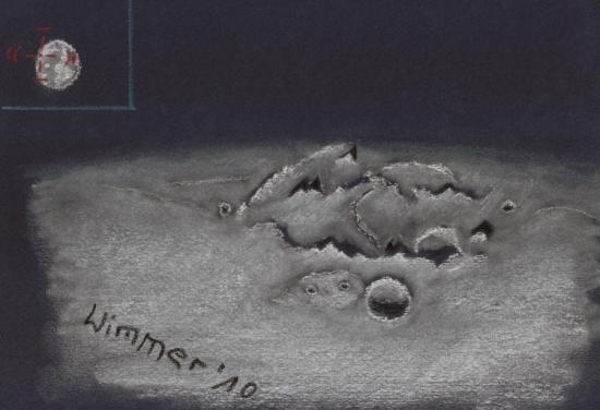 Dodatkowe informacje: Kratery Artystarch, Herodotus oraz Vallis Schröteri. Okular SWA-58 9mm + barlow 2x. Power około 277x. Szkic wykonany pastelami. |