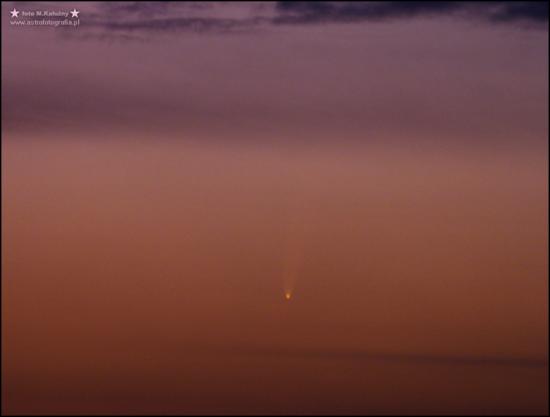 Dodatkowe informacje: Kometa już bardzo nisko, zdjęcie robione w przerwie między chmurami, przy bardzo silnym wietrze. Myślę, że to zdjęcie pożegnalne z kometą.... |