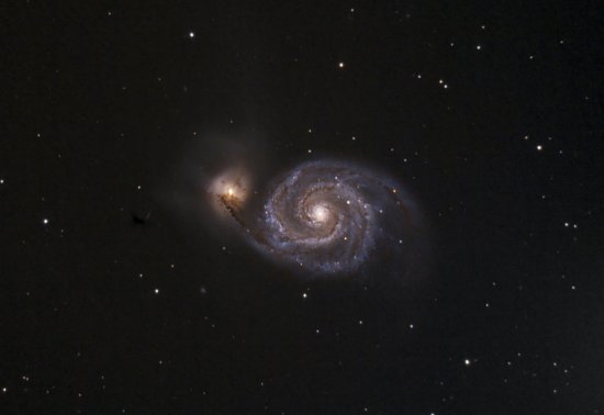 Ten ciemny obiekt na lewo od galaktyki to kłak na matrycy który zmieniał połozenie przy każdym zdięciu, nie do usunięcia konwencjonalnym flatem. |