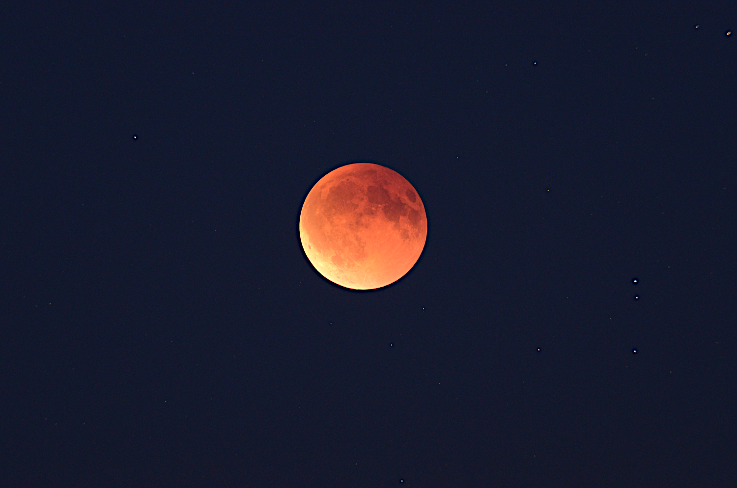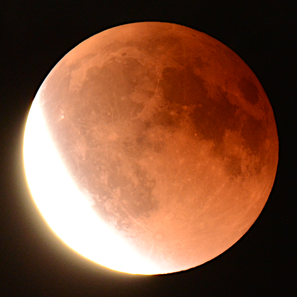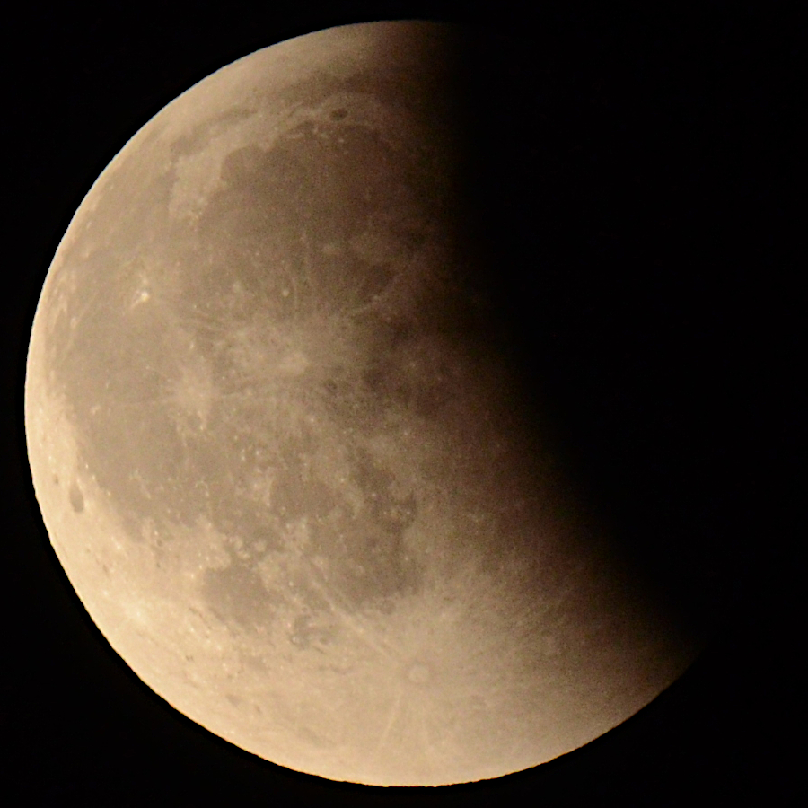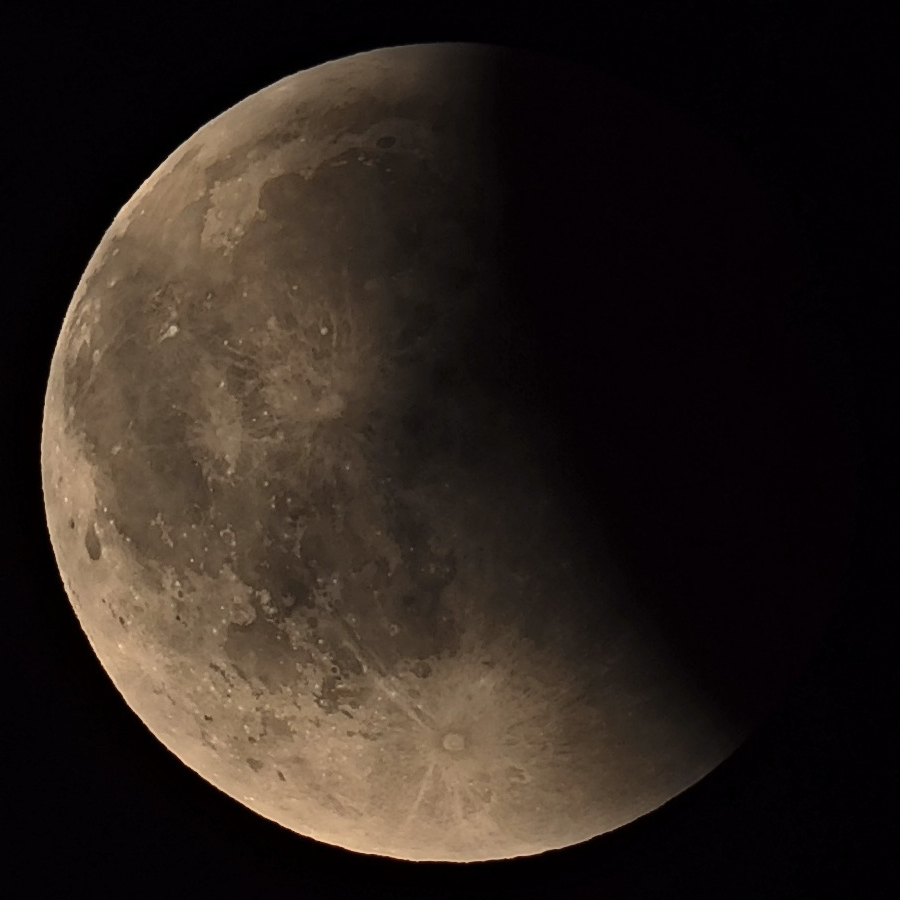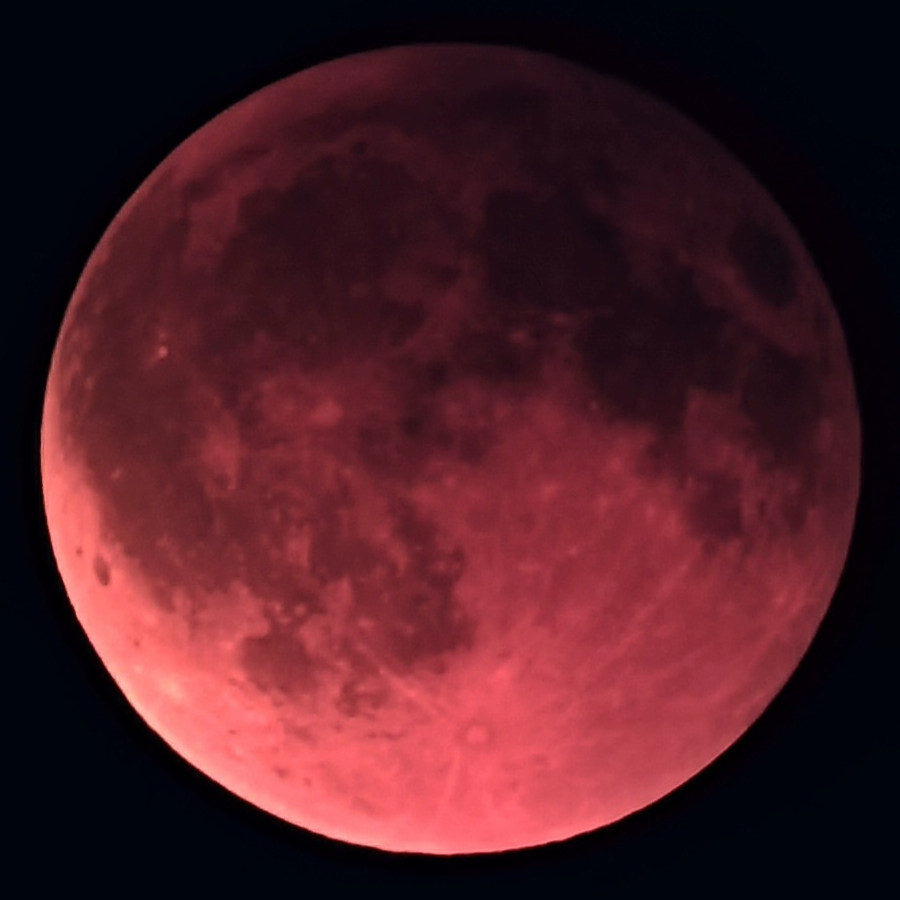 Do fazy maksymalnej mieliśmy zaledwie 15 minut, a Księżyc raz po raz chował się za kolejnymi pasmami chmur. W końcu jednak wspiął się nad nie i nareszcie mieliśmy czysty widok z dłuższą perspektywą czystego nieba. Wraz z zapadaniem zmroku pojawiała się coraz wyraźniejsza Droga Mleczna. Księżyc był ciemnoczerwony z delikatnym przejściem do nieco jaśniejszego odcienia w dolnej części tarczy.