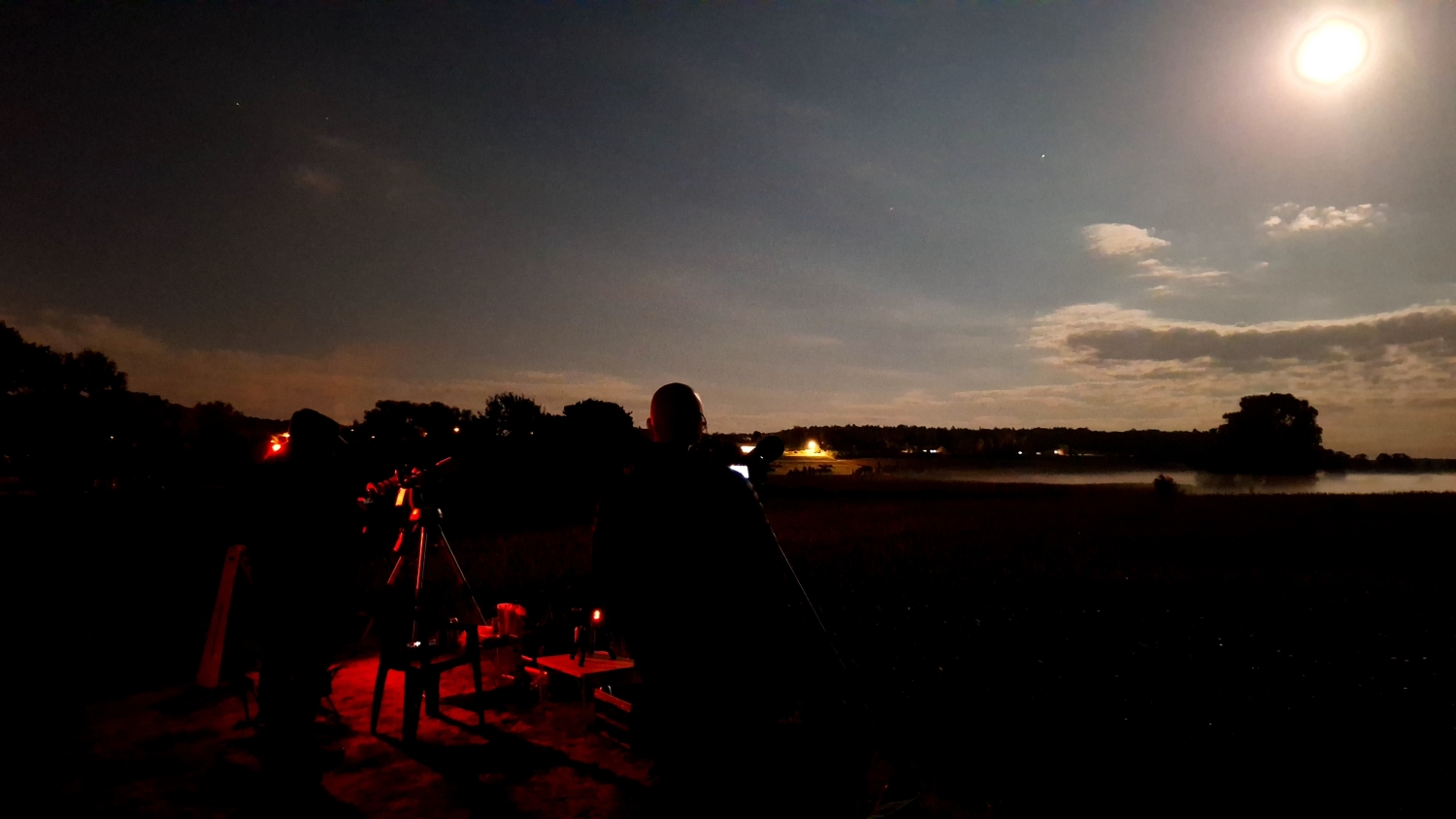 W trakcie zaćmienia mieliśmy też okazję śledzić je wizualnie w 80ED Thomasa. Piękne widoki, obraz żyleta. Na prośbę Tomka wycelowaliśmy też w Saturna. Pomimo "wąskich" pierścieni planeta prezentowała się rewelacyjnie. Przy okazji podglądaliśmy relacje live z zaćmienia na YT, a po 21 włączyliśmy też streaming meczu Polska-Finlandia. Widzieliśmy nawet gola Lewandowskiego.