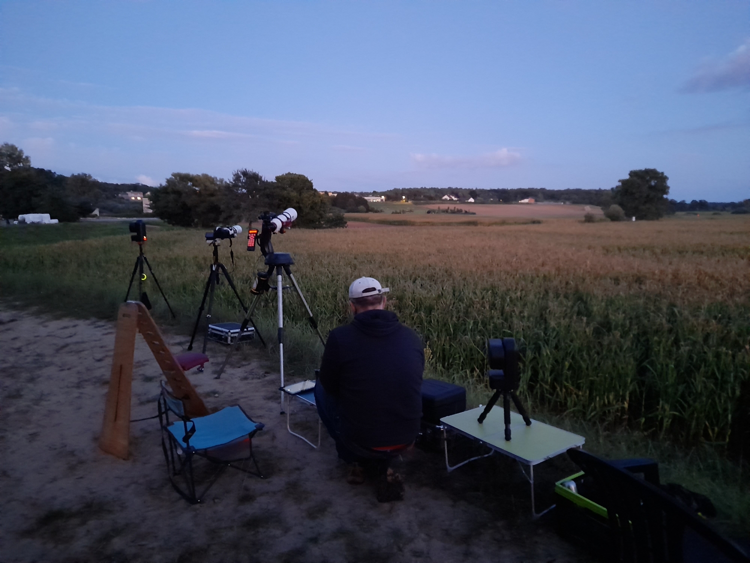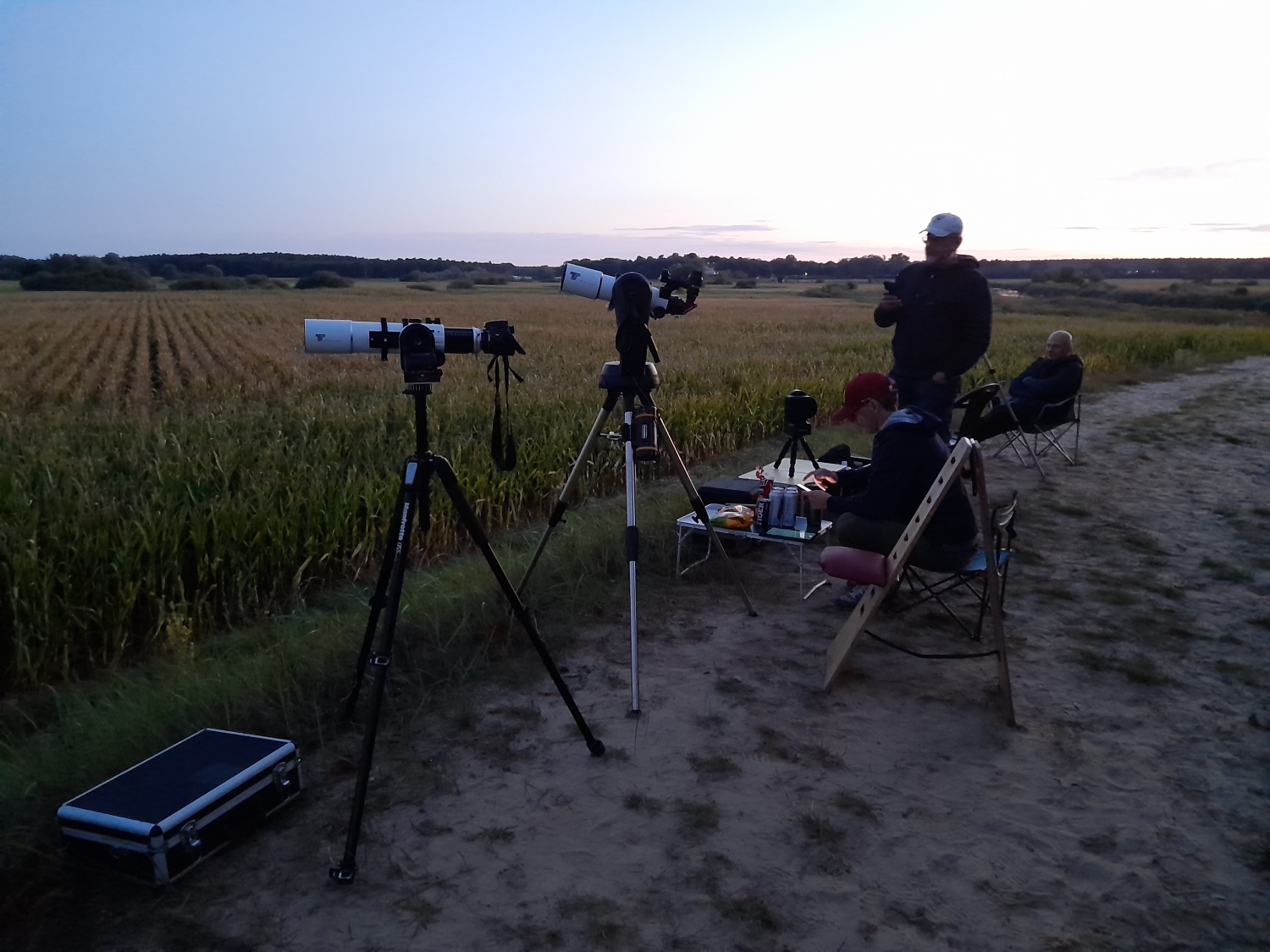 Pomimo początkowych problemów z chmurami udało nam się prześledzić praktycznie całą fazę całkowitą i większość częściowej cieniowej. Pod koniec zaćmienia znów nadeszły chmury, ale one nam już tak nie przeszkadzały, a nawet dodawały magicznego klimatu. Dodatkowo zaatakowała nas wilgoć. Wszystko pływało, a optyka rosiła. No ale to już była końcówka zaćmienia, więc po prostu zaczęliśmy się pakować, wciąż chłonąc atmosferę udanej sesji zaćmieniowej. Wraz z nami na grobli zostali najwytrwalsi twardziele.