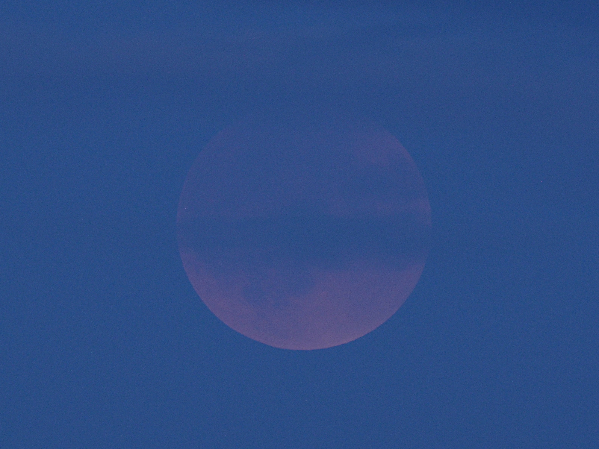 Wschód Księżyca zapowiadany był przed 19.30, ale zaćmioną sylwetkę Księżyca wypatrzyłem dopiero krótko przed 20, jako bladą poświatę za chmurami. Wcześniej wydawało nam się, że coś tam widać, ale to były tylko zwidy. Chwilę po 20 zrobiłem to zdjęcie:
