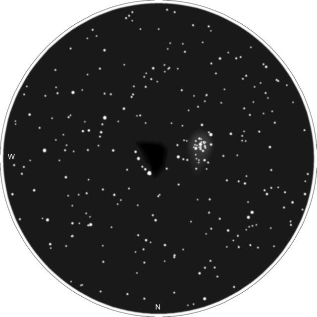 Powyżej: Autorski szkic cyfrowy B86 oraz NGC 6520 widocznych przez 4-calowy (10,2 cm) refraktor.