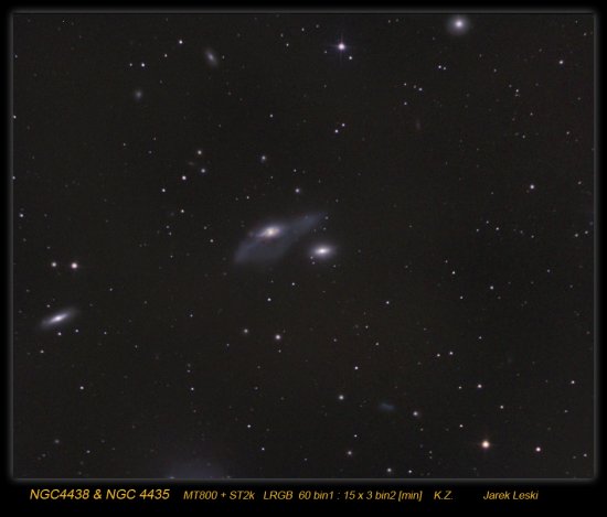 Super, Jarek. Czekałem na to zdjęcie :) Świetnie wyszły, zawieszone w przestrzeni (3D). Widać też zewnętrzną część M86! Wczoraj mieliśmy je na widelcu w Syntach. I zdecydowanie lepsza sygnaturka - czytelna. | |