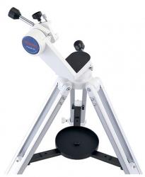 Standardowy statyw aluminiowy, dość wiotki przy maksymalnym wysunięciu nóg, półeczka na akcesoria bez otworów na okulary.