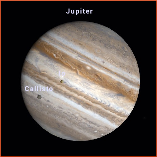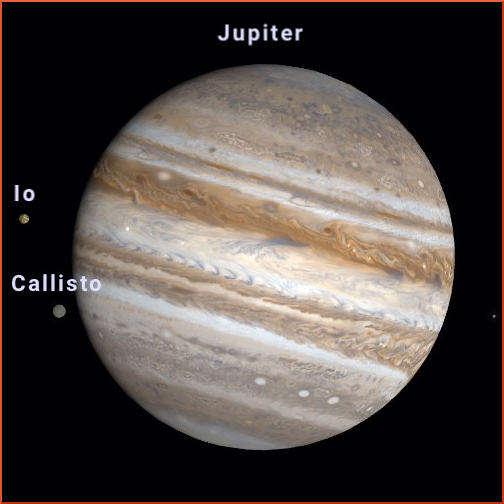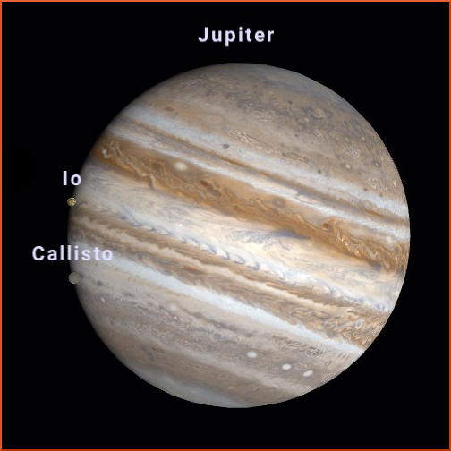 Obserwacje zacząłem, jak oba księżyce były jeszcze "gwiazdkami" bardzo blisko krawędzi tarczy planety. Ostatecznie pierwszy kontakt księżyców z tarczą Jowisza obejrzałem jeszcze przed odebraniem astrostołka. Ten etap wygrał Io - księżyc był widoczny jako wyraźnie niegwiazdowy (tarczka) i przypominał pryszcz odstający od Jowisza. Po przejściu obu księżyców na tarczę planety, scenę przejął Kallisto, widoczny jako wyraźna ciemniejsza kropka na jaśniejszej strefie Jowisza. Io praktycznie zniknął na tle ciemniejszego południowego pasa zwrotnikowego. Po nieco ponad godzinie na tarczę wszedł cień Io, widoczny jako wyraźna czarna kropka sunąca na krawędzi pasa zwrotnikowego. Kilka razy wydawało mi się, że na tarczy Jowisza wyskoczyła kropka samego Io, ale trudno ocenić, czy to był on. Za to na północnym pasie zwrotnikowym była dość wyraźnie widoczna ciemniejsza struktura. Oto zrzuty ze Stellarium kolejnych etapów: